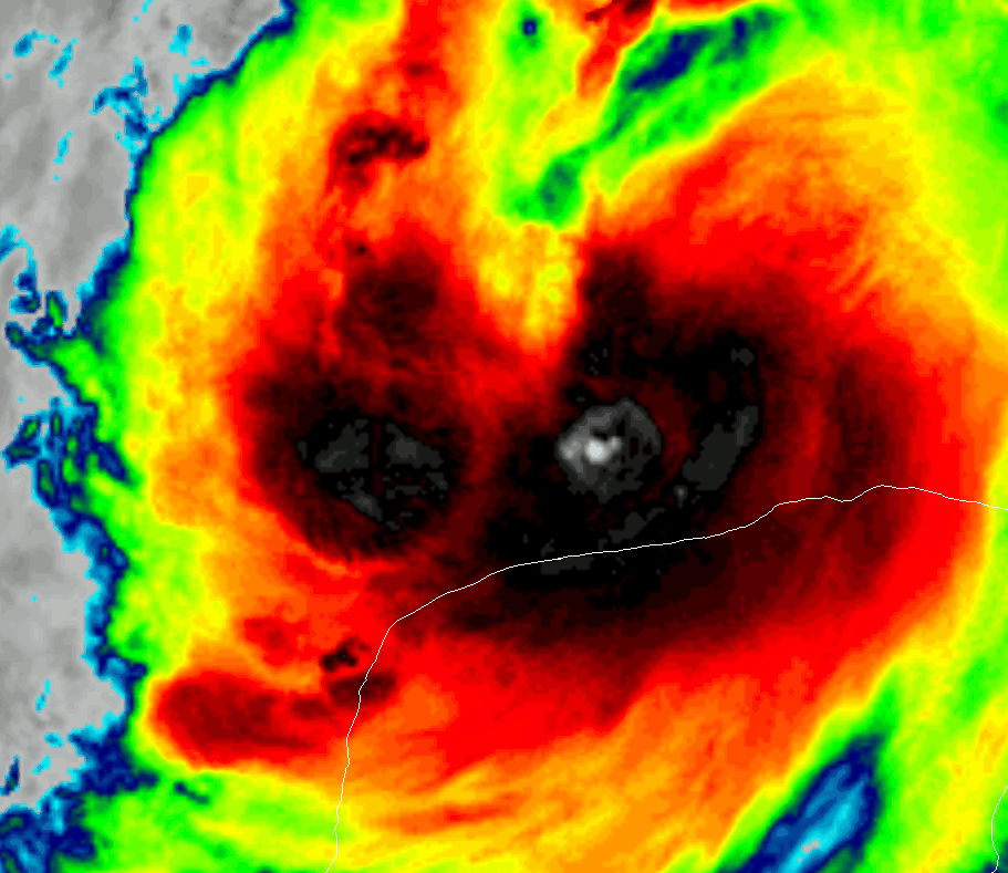 Satellite imagery shows plenty of intense thunderstorm activity developing on the southern side of Delta’s eye this evening. If those “hot towers” can wrap around to the northern/eastern side of the system, it will be able to strengthen a bit more quickly. That said, the storm’s circulation is much bigger now so I don’t think we’ll see any extreme rapid intensification like we did yesterday.