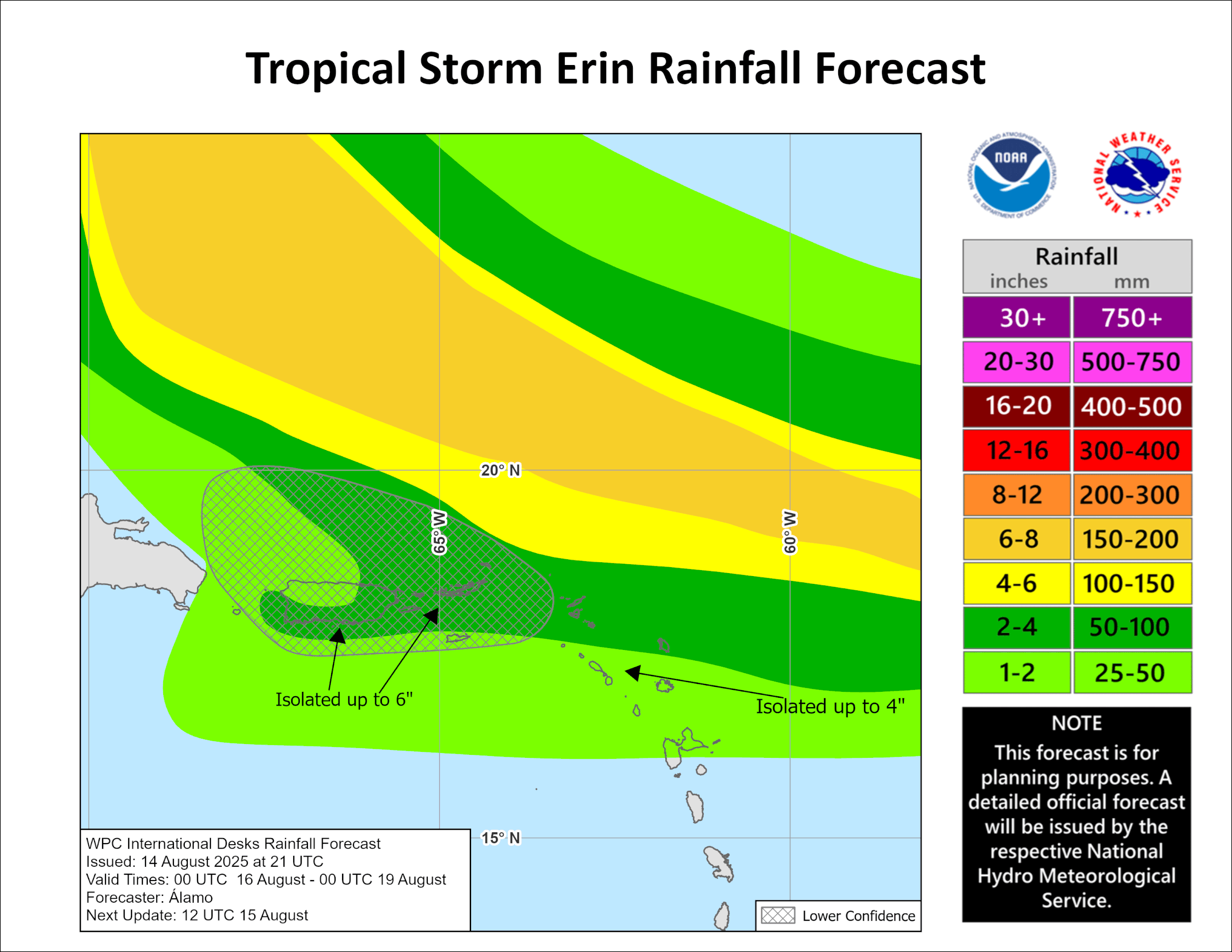 Erin is expected to produce life-threatening surf and rip currents along the beaches of the Bahamas, much of the east coast of the U.S., Bermuda, and Atlantic Canada during the next several days. Interests along the North Carolina Outer Banks and Bermuda should monitor the progress of Erin as there is a risk of strong winds associated with the outer rain bands during the middle part of the week. Thank goodness this powerful storm will not make landfall.
