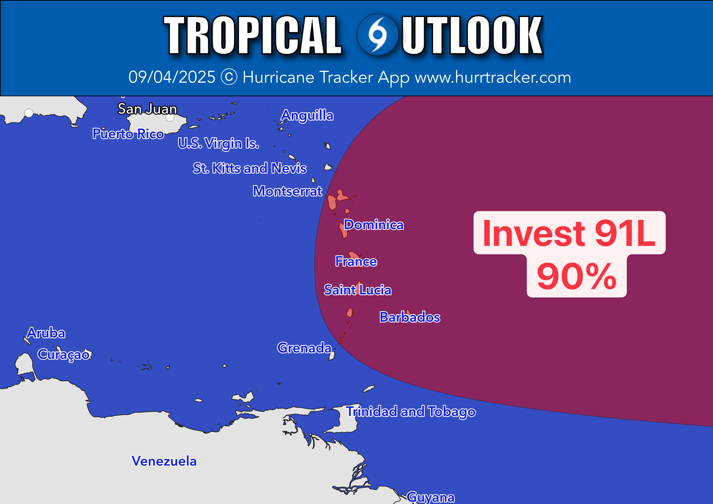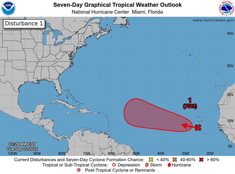 Important development. A portion of the Lesser Antilles are now included in the NHC “hatched region” for Invest 91L. Development odds are at 90% and model trends are showing an increasing threat in about a week. Will continue to monitor trends.
